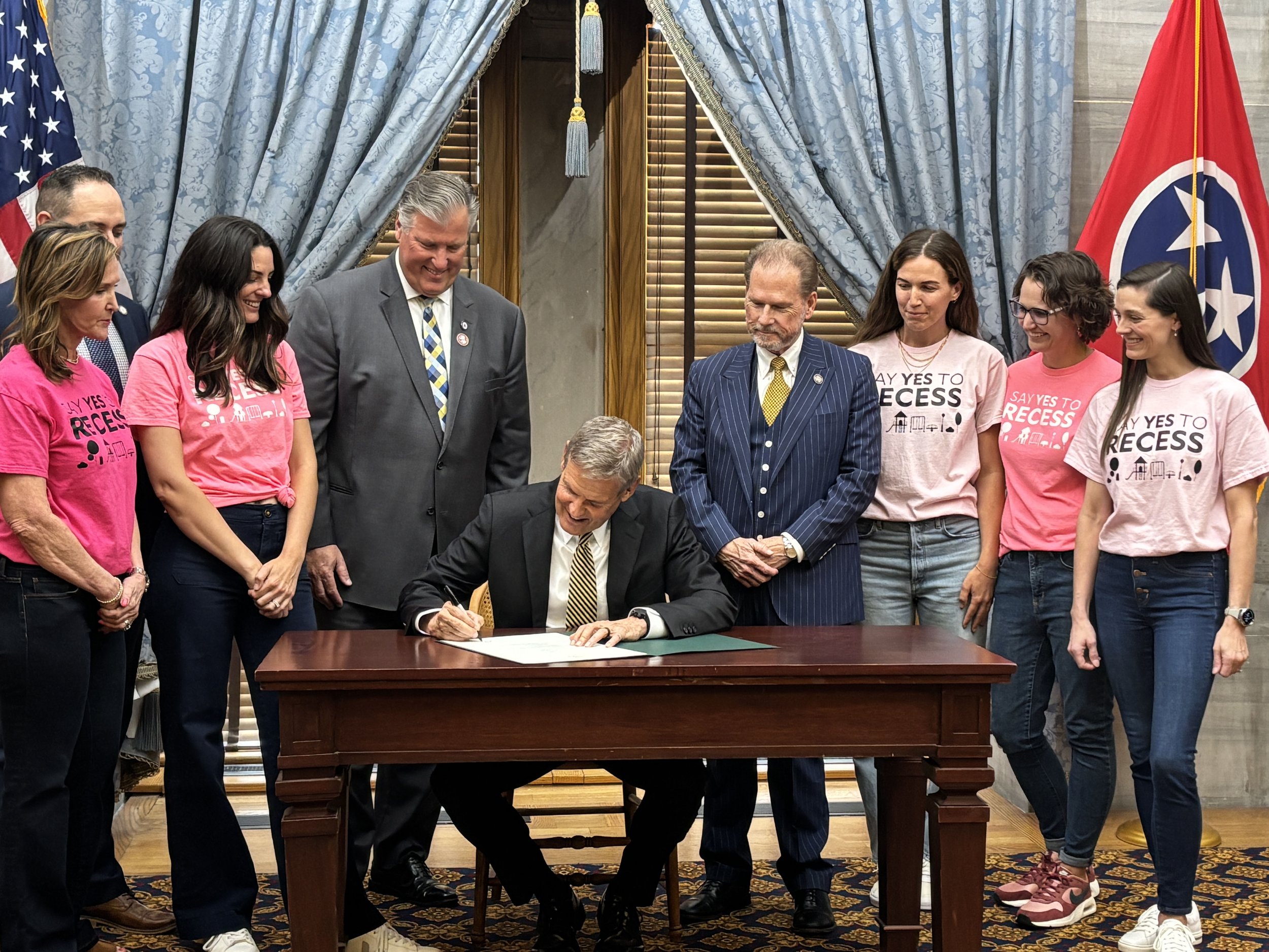 In early 2025, SAY YES TO RECESS (SYTR) officially launched as a nonprofit, turning passion into action and advocacy into measurable change. The movement was founded by three mothers—Rachel Bush, Kathryn Truman, and Morgan Garner (pictured left)—who had spent years working to address recess inequities in Montgomery County, TN. After two years of advocacy resulted in only a modest 10-minute increase in daily recess, they shifted their focus to the state capitol, determined to drive statewide reform and champion a national goal of 60 minutes of recess for every child.
