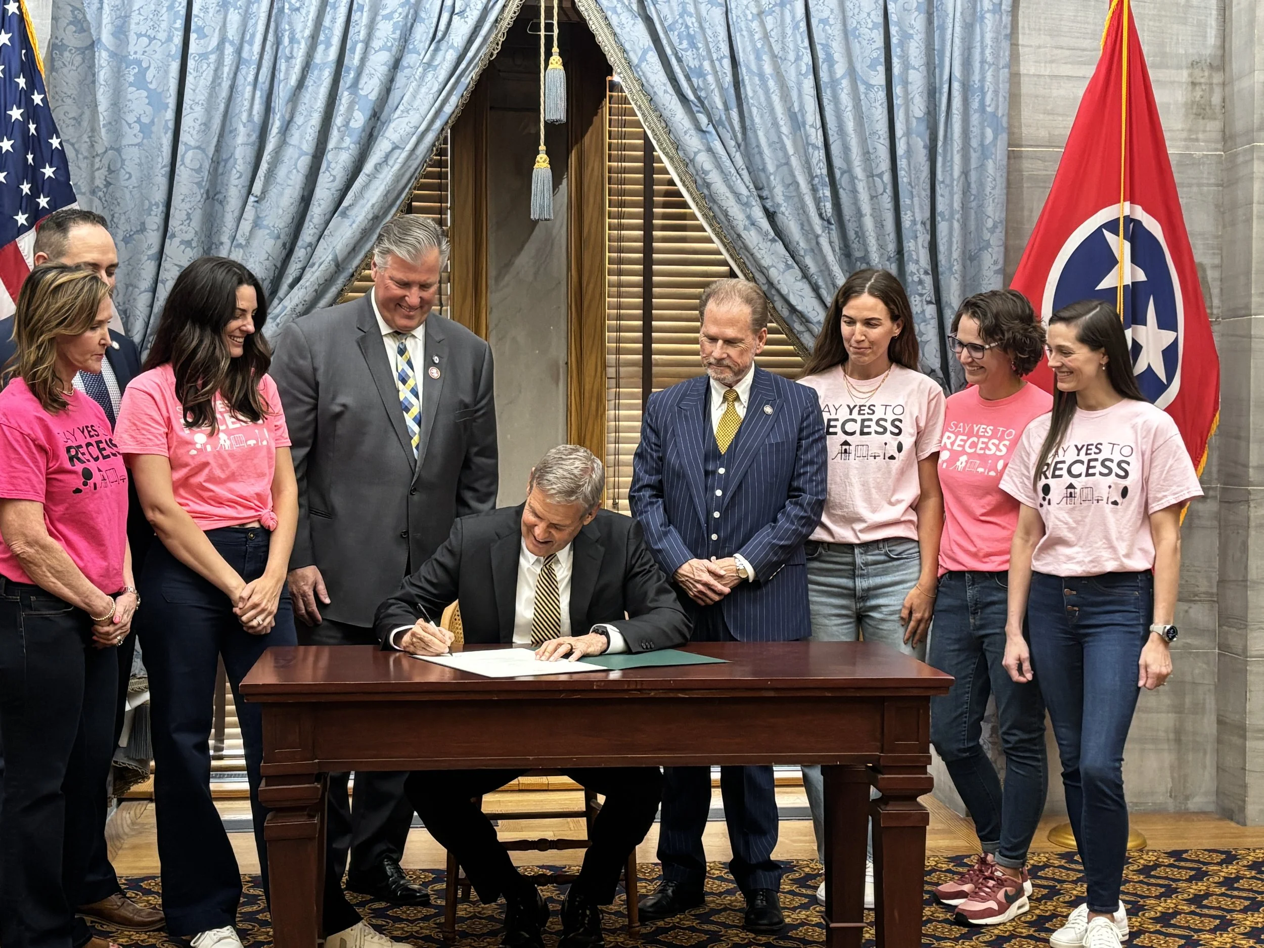 In 2025, SYTR successfully advocated for recess expansion in Tennessee, helping secure 40 minutes of daily recess for elementary students statewide—signed into law by Governor Bill Lee.